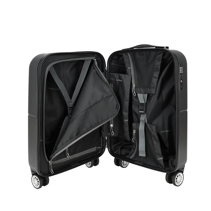 De Decent Neon-Fix Trolley 55 is een handbagagekoffer die voldoet aan de IATA-normen. Met een inhoud van 32 liter is deze trolley ideaal voor reizen van 2-3 dagen. De koffer is voorzien van een harde schaal, gemaakt van krasbestendig ABS-materiaal, dat jouw bagage beschermt tegen stoten en schokken tijdens je reis. Je waardevolle spullen zijn veilig opgeborgen met het geïntegreerde cijferslot. De binnenkant van de koffer is handig ingedeeld met een interne verdeler, waardoor je de ruimte kunt opdelen in twee compartimenten. Daarnaast zorgen de pakriemen ervoor dat je kleding en spullen netjes op hun plek blijven, zelfs tijdens turbulent reizen.