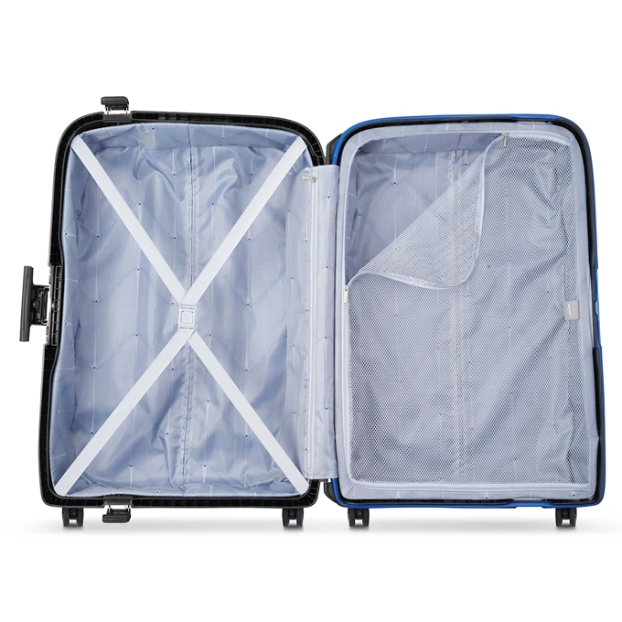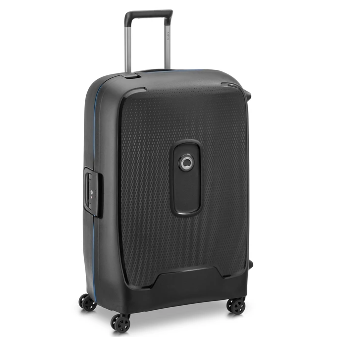 De Moncey 4 Wheels Trolley 76 van het merk Delsey is een grote, sterke en duurzame koffer. De koffer is vervaardigd uit 100% polypropyleen en is hierdoor zeer schokbestendig. Het is een duurzame koffer die jarenlang gebruikt kan worden voor diversie avontuurlijke reizen. De koffer heeft een vaste sluiting met een TSA-combinatieslot voor een perfecte bescherming van de bagage. Kleding is zeer geordend op te bergen dankzij de elastische inpakriemen, het afsluitbare ritscompartiment en de diverse ritsvakken. De vier geruisloze en dubbele wielen zorgen voor een maximaal gebruiksgemak.