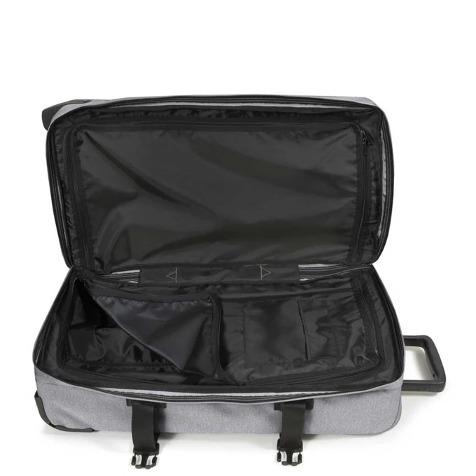 De Eastpak Tranverz M is de middenmaat reistas uit de Tranverz serie. De reistas heeft twee soepele wieltjes, een verstelbare trekstang en twee handvatten waardoor de koffer gemakkelijk overal mee naar toe te nemen is. Aan de binnenzijde van de tas bevinden zich twee compartimenten die worden afgesloten met een rits en ook aan de voorzijde van de tas is een ritsvak te vinden. De spanbanden maken het mogelijk om bagage zo compact mogelijk te maken. Thuis kan de tas worden platgemaakt en zo worden opgeruimd.