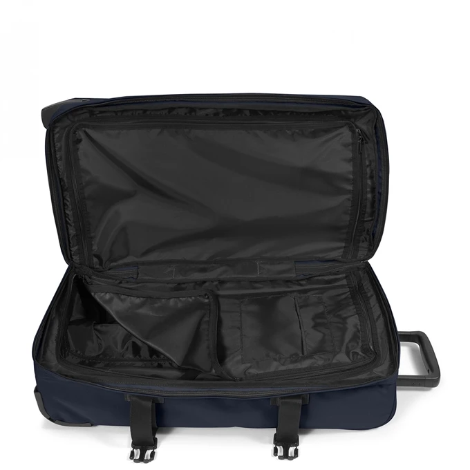 De Eastpak Tranverz M is de middenmaat reistas uit de Tranverz serie. De reistas heeft twee soepele wieltjes, een verstelbare trekstang en twee handvatten waardoor de koffer gemakkelijk overal mee naar toe te nemen is. Aan de binnenzijde van de tas bevinden zich twee compartimenten die worden afgesloten met een rits en ook aan de voorzijde van de tas is een ritsvak te vinden. De spanbanden maken het mogelijk om bagage zo compact mogelijk te maken. Thuis kan de tas worden platgemaakt en zo worden opgeruimd.
