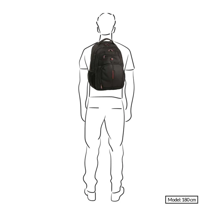 Met deCornell Laptop Rugzak 17″ van Enrico Benetti kunnen alle zakelijke eigendommen perfect geordend worden opgeborgen. Een laptop tot 17” kan veilig worden opgeborgen in het achterste ritscompartiment. Daarnaast beschikt de tas over een compartiment voor A4-formaat documenten of boeken. Het voorvak is goed georganiseerd en beschikt onder andere over insteekvakken en pennenhouders. Eigendommen kunnen bij de hand worden gehouden dankzij het ritsvak aan de voorkant en de mesh insteekvakken aan de zijkanten. De tas is voorzien van u-vormige ritsen en hierdoor blijven eigendommen altijd eenvoudig toegankelijk. De gewatteerde schouderbanden en het gewatteerde rugpaneel zorgen voor een maximaal draagcomfort.
