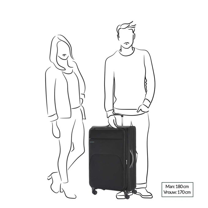 Bagage is veilig opgeborgen in het ruime hoofdcompartiment met TSA-cijferslot. Dit maakt het reizen naar de VS ook net even iets prettiger. Het interieur beschikt over ritsvakken van gaas en hierdoor kan bagage geordend worden opgeborgen. Door middel van de inpakriemen blijft alles netjes op zijn plaats zitten tijdens de reis. Het ritsvak aan de voorkant is ideaal om bijvoorbeeld reisdocumenten in op te bergen. Dankzij de vier dubbele wielen, de handvatten en de uitschuifbare, dubbele trekstang is de koffer uiterst comfortabel te gebruiken.