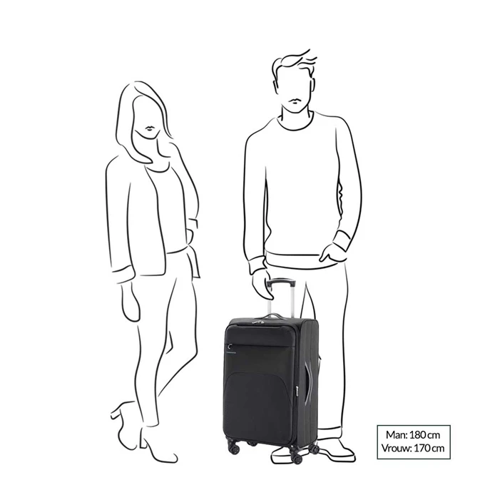 Het ruime hoofdcompartiment met ritsssluiting beschikt over een TSA-cijferslot, zodat bagage extra goed beveiligd is.Het interieur beschikt over ritsvakken van gaas en hierdoor kan bagage geordend worden opgeborgen. Door middel van de inpakriemen blijft alles netjes op zijn plaats zitten. Het ritsvak aan de voorzijde is ideaal om bijvoorbeeld reisdocumenten op te bergen. De vier soepele, dubbele wielen, de handvatten en de uitschuifbare, dubbele trekstang zorgen voor een maximaal gebruikscomfort.