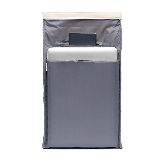 Roll Top Mini van Lefrik is de kleinere versie van de Roll-rugzak, maar biedt alsnog genoeg ruimte om al je nodige spullen mee te nemen als je de stad ingaat. Het heeft twee standen dankzij het roll-top sluitsysteem met sterke magneten en ritssluiting. Het brede hoofdvak is voorzien van een gewatteerde hoes voor een kleine tablet, een vak met ritssluiting en een mes-organizer.