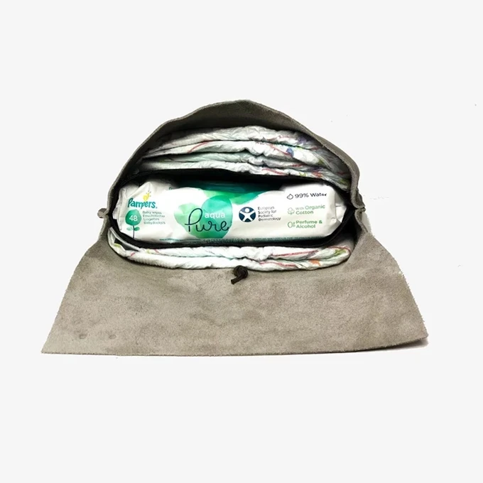 De luiertas is vervaardigd uit 100% rundleer, wat het een chique uitstraling geeft. Aan de voorkant heeft het een stoer Mozz logo, een exclusieve finishing touch aan deze mooie luieretui!