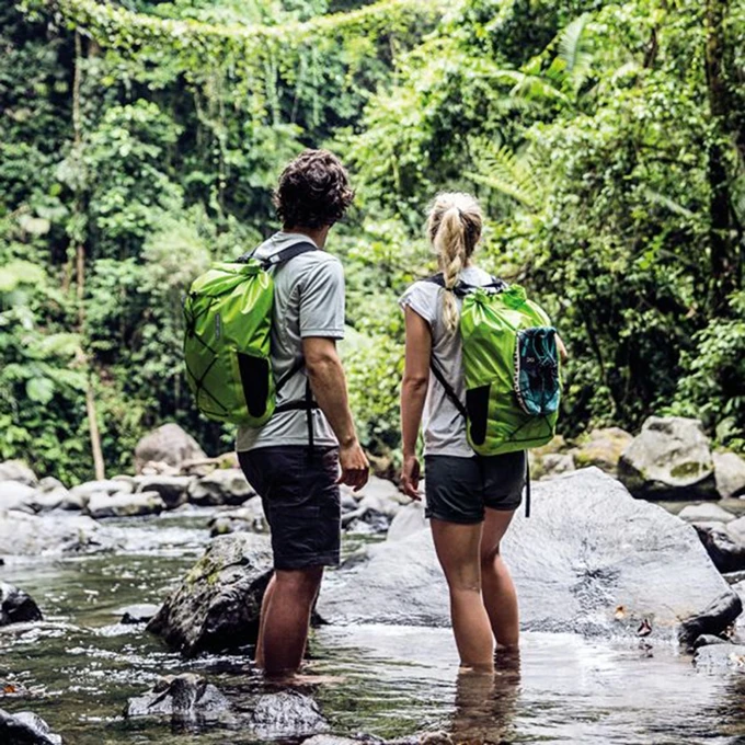 De Light-Pack Two 25 L van het merk Ortlieb is een super lichte rugzak met een modern design. Het hoofdvak is ruim en biedt opbergruimte voor al je spullen. De hele inhoud zal beschermd zijn tegen water dankzij een rolltop-sluiting en het waterdichte materiaal waarvan de rugzak is gemaakt. De elastische lussen aan de voorzijde van de tas zijn perfect voor het bevestigen van bijvoorbeeld schoenen. In de zijvakken kun je perfect een waterfles, een paraplu of zonnebril kwijt. De schouderbanden zijn soepel en verstelbaar. Dankzij deze schouderbanden en een borstriem is de tas prettig te dragen.