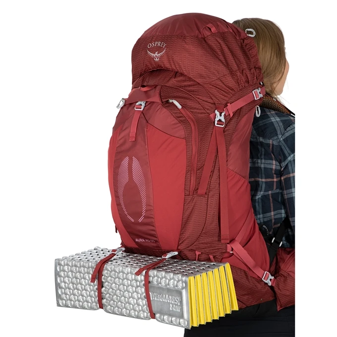 De Aura AG 65 van Osprey is een comfortabele rugzak met een sportief design. Het unieke aan deze backpack is, is dat hij is voorzien van een volledig geventileerde heupgordel. DIt zorgt voor ventilatie en comfort tijdens het dragen. Dankzij dubbele voorvaken, een hoofdvak met ritssluiting en een dekselvak met ritssluiting kun je eigendommen overzichtelijk en zorgvuldig organiseren. Het rugpaneel en de heupgordel zijn stevig en ventileren en de schouderbanden zijn gevoerd en verstelbaar in lengte. Dit zorgt voor extra comfort tijdens het dragen. Voor ultiem comfort is het belangrijk dat je backpack de juiste maat heeft. Deze Osprey Aura vrouwen backpacks hebben verschillende maten. Maat XS/S is geschikt voor een ruglengte van 33-43 cm. Maat M/L is geschikt voor een ruglengte van 40,5-50,5 cm.