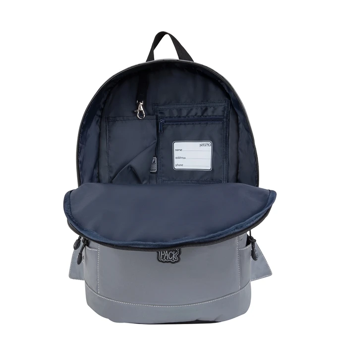 De Pick & Pack Backpack M is speciaal ontworpen voor kinderen van 8 tot 12 jaar. In het hoofdvak is er voldoende ruimte voor A4-formaat spullen, een lunchbox of andere persoonlijke eigendommen. Verder beschikt deze tas ook over een sleutelhouder, telefoonvak en een apart gewatteerd ritsvak voor boeken of een 13” laptop. Aan de binnenzijde heeft de tas een apart insteekvak voor een waterflesje, zodat deze gemakkelijk op zijn plek gehouden kan worden. De tas is voorzien van reflecterende details zodat de tas ook in het donker goed opvalt. De schouderbanden zijn in lengte verstelbaar en het rugpaneel is gewatteerd. Aan de binnenzijde is een label bevestigd waarop een naam, adres en telefoonnummer vermeld kunnen worden.