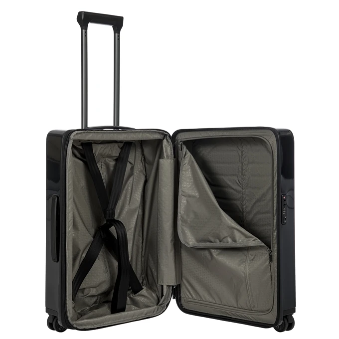 Deze ruime, lichtgewicht koffer is de Roadster Hardcase 4W Trolley M van Porsche Design. De koffer is gemakkelijk uitbreidbaar door middel van een soepele rits. Het interieur is overzichtelijk ingedeeld met een interne verdeler en pakriemen. Een TSA-cijferslot zorgt voor veiligigheid van bagage. Moeiteloos is de koffer vooruit te rollen dankzij vier spinner wielen en een uitschuifbare trekstang met ergonomische handgreep.