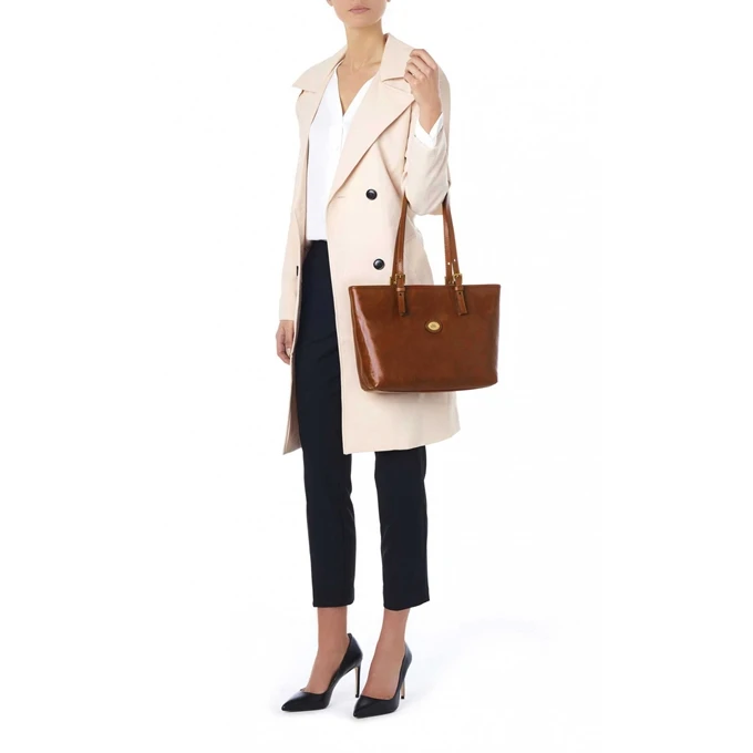 De The Bridge Story Donna Ladies Shopper is een ware verschijning dankzij hetstijlvolle leder en de goudkleurige details. Het hoofdcompartiment met ritssluiting is aan de binnenzijde voorzien van een ritsvak en twee insteekvakken van verschillende formaten. Dankzij de wat langere draaghengsels is de tas op diverse manieren prettig te dragen.