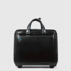 Piquadro Black Square Briefcase With Wheels 2 Compartments Black