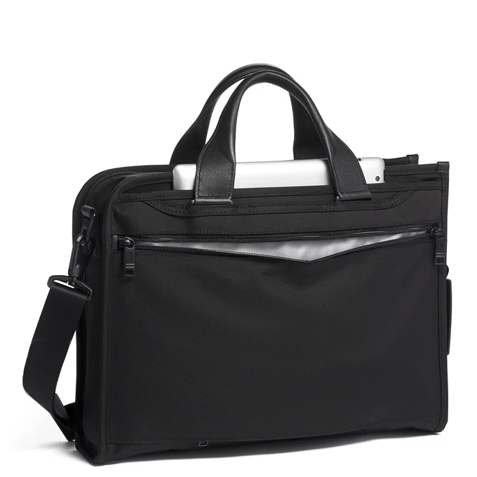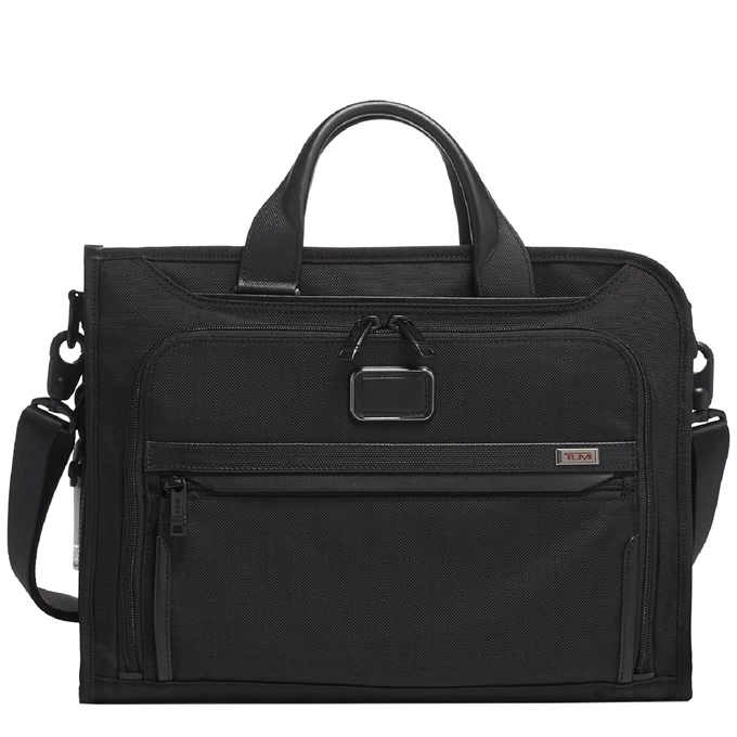 Op zoek naar een nieuwe aktetas? Misschien voldoet deze tas uit de Alpha serie van Tumi wel helemaal aan jouw wensen. Ideaal voor werk, maar ook uitstekend te gebruiken als tas voor dagelijks gebruik, waar je ook je laptop op een veilige manier in mee kunt nemen. De aktetas is gemaakt van nylon en heeft een effen patroon. Deze Tumi tas is voorzien van een geïntegreerd laptopvak, geschikt voor een laptop van maximaal . Wil je 100% zeker weten dat je laptop ook echt past? Meet dan de buitenafmeting van je laptop even op. Deze dient kleiner te zijn dan de buitenafmetingen van deze tas (de buitenafmetingen van deze aktetas zijn H 32 x B 7.5 x D 41.5). Op deze tas wordt 5 jaar garantie gegeven.